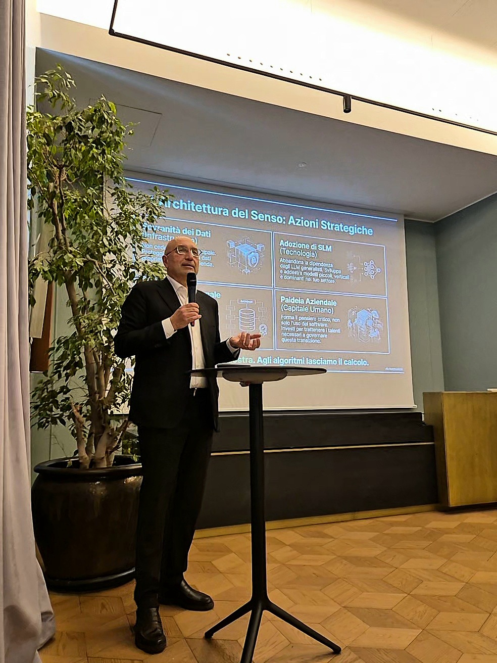 Parlando di sovranità del dato, Becca afferma: “Oggi abbiamo i supercalcolatori e in questi giorni ne verrà annunciato uno nuovo ottimizzato per l’AI 10 volte più potente di Leonardo che diventerà operativo a fine anno. Ad aprile creeremo 5 gigafactories, l’AI factory costa circa 400 milioni di euro, le gigafactory 10 volte tanto. In Italia in questa direzione si stanno muovendo Leonardo ed Eni. Saranno luoghi in cui conservare dati, interpretati come un freno ma anche come una protezione”.